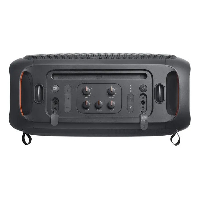 PORTABLE DESIGN: The JBL PartyBox On-The-Go has a padded shoulder strap with bottle opener attached so you can enjoy your favorite beverages as you groove the night away.