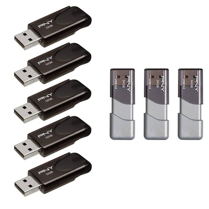 Build a repository of your digital files with this pack of 5 PNY Attache 4 USB 2.0 flash drives. The 16GB storage capacity accommodates plenty of large music and video files, while the compatibility with Mac, Windows and Linux OS enables easy setup with most computers. These PNY Attache 4 USB 2.0 flash drives feature a built-in key loop to securely attach to your key holder while moving around. 16GB maximum storage capacity. USB 2.0 interface supports most host devices. Compatible with Mac, Linux and PC. USB-A connector for fast file transfer. Lightweight design for portability.
