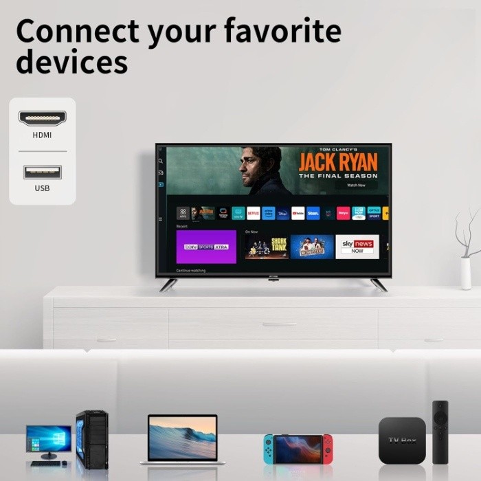 Enjoy Full HD resolution with Smart TV powered by TIZEN. Multisystem Compatible Full HD 1920 x 1080 LED Panel Motion Rate of 50 Built-In Wi-Fi & Ethernet Connectivity Screen Mirroring Technology App Downloads Integrated Web Browser 2 x HDMI / 1 x USB Ultra Clean View PurColor .