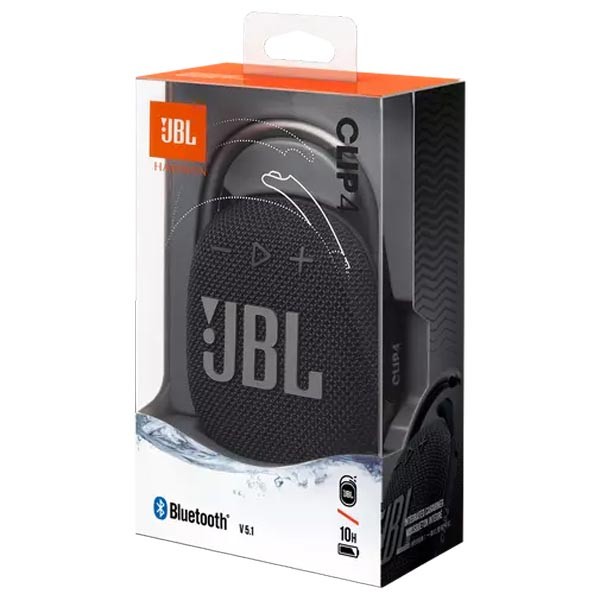 Cool, portable, and waterproof. The vibrant fresh looking JBL Clip 4 delivers surprisingly rich JBL Original Pro Sound in a compact package. The unique oval shape fits easy in your hand. Fully wrapped in colorful fabrics with expressive details inspired by current street fashion, it’s easy to match your style. The fully integrated carabiner hooks instantly to bags, belts, or buckles, to bring your favorite tunes anywhere. Waterproof, dustproof, and up to 10 hours of playtime, it’s rugged enough to tag along wherever you explore.