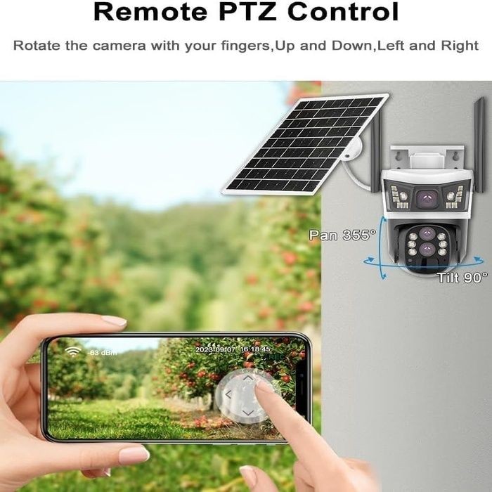 Experience superior surveillance with this advanced V380 Pro solar-powered security camera system. Featuring a triple-lens design with full HD CMOS wide-angle capability, this camera offers exceptional coverage with its impressive 355-degree horizontal pan and 90-degree vertical tilt range. The 10X optical zoom ensures you capture detailed footage from a distance. Equipped with black light night vision technology, it delivers crystal-clear, full-colour imaging even in extremely dark conditions. The camera supports two-way audio communication and includes motion detection with picture push notifications. With IP66 waterproof rating, it's suitable for both indoor and outdoor installation. The system includes built-in siren and flood light features for enhanced security. Storage options are flexible with support for up to 128GB micro SD cards and cloud storage capabilities. Monitor your property remotely through the V380 Pro Application, which enables convenient P2P connection and remote control functionality. The integrated solar panel ensures continuous operation while the 4G connectivity provides reliable transmission of surveillance footage.